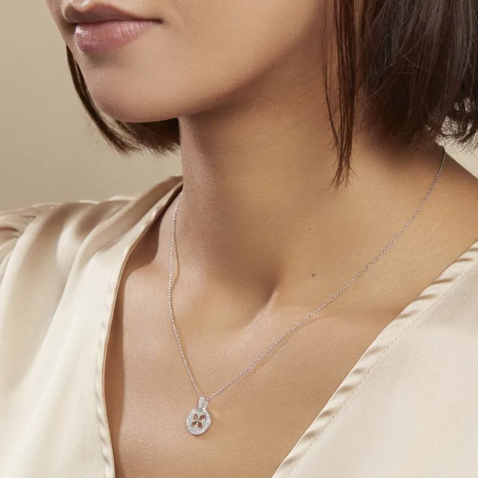 Collier Argent Blanc 925/1000 Fleur Et Oxydes De Zirconium 42cm