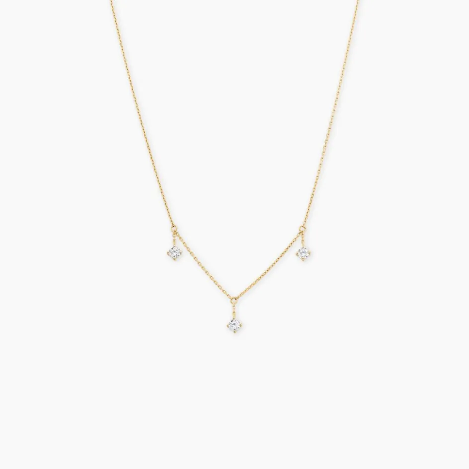 Collier Or Jaune 375/1000 Pampille Trilogie Oxyde De Zirconium Serti Griffes Maille Forcat 40+2cm