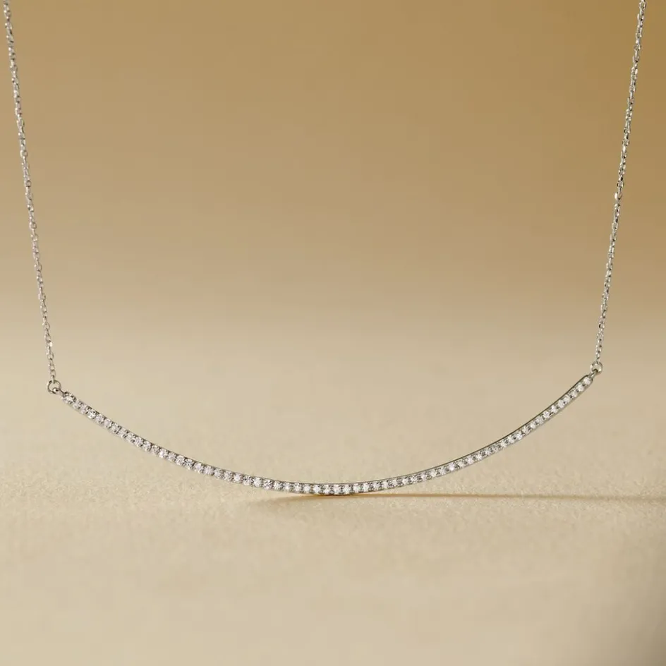 Collier Or Blanc 375/1000 Avec Barrette Diamants 42cm