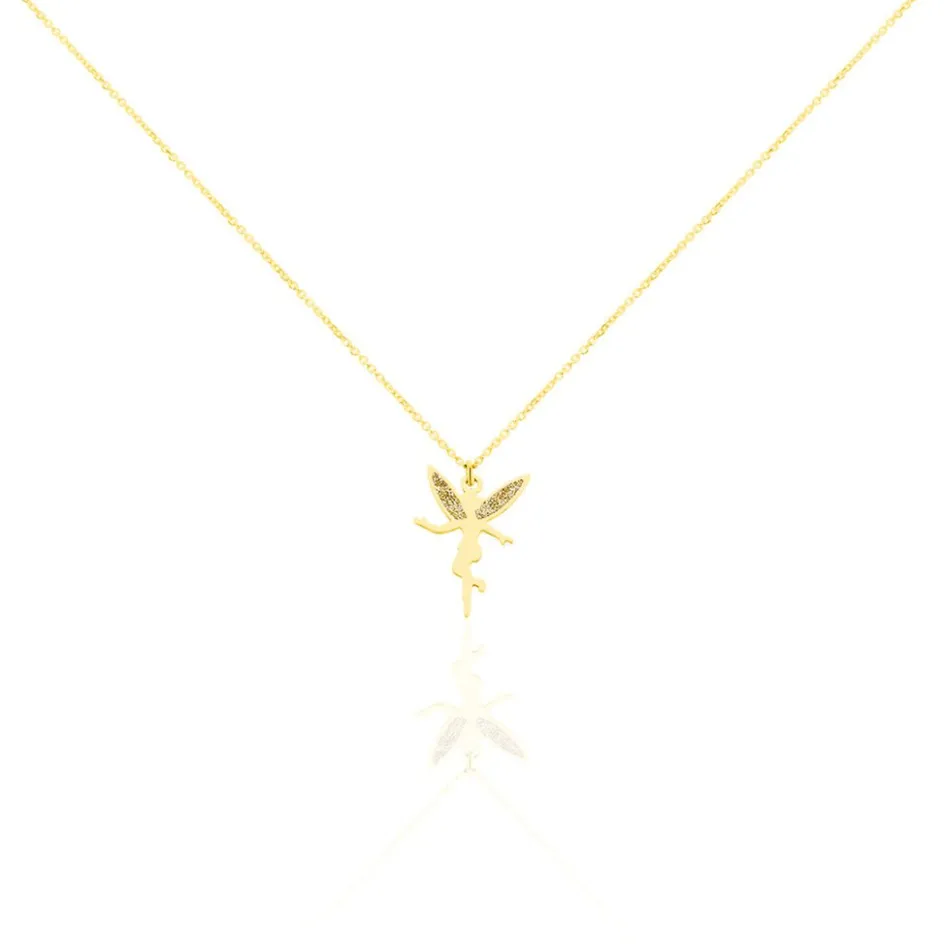 Collier Or Jaune 375/1000 Motif Fee Glitter Dore Maille Jaseron 38cm