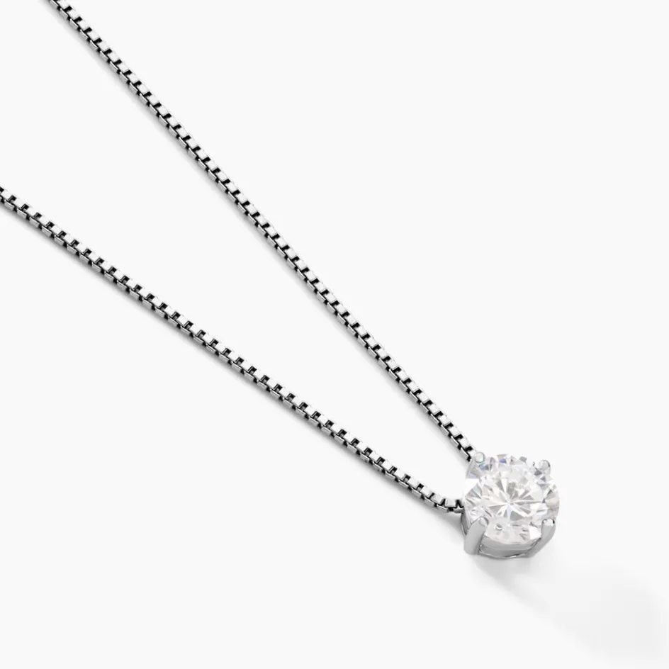 Collier Argent 925/1000 giulya Oxyde De Zirconium Rond 6mm Serti Griffes Maille Venitienne 40cm