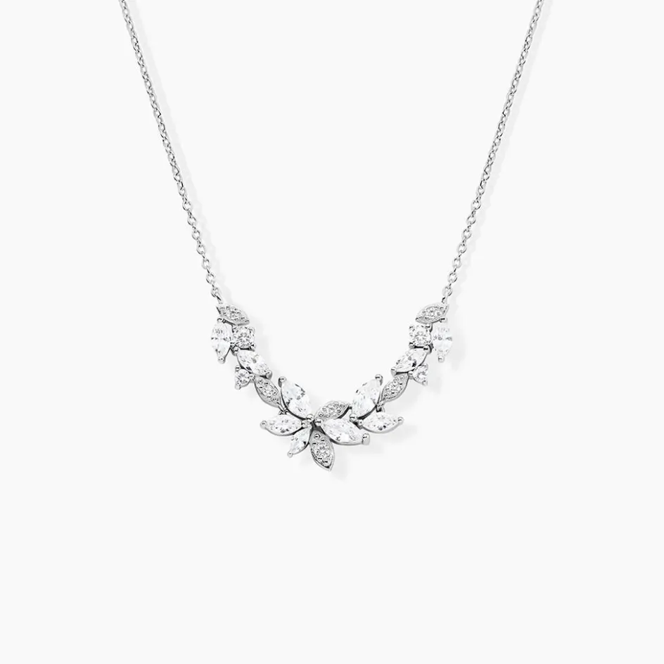 Collier Argent Blanc 925/1000 Fleur Oxyde De Zirconium Blanc serti 2 griffes 1.3mm 45cm