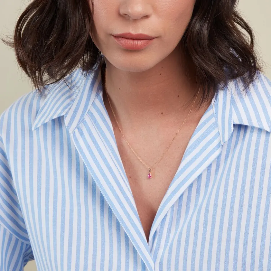 Collier Or Jaune 375/1000 Forme Poire Rubis 0.6cts Serti Griffes Maille Forcat 40+2cm