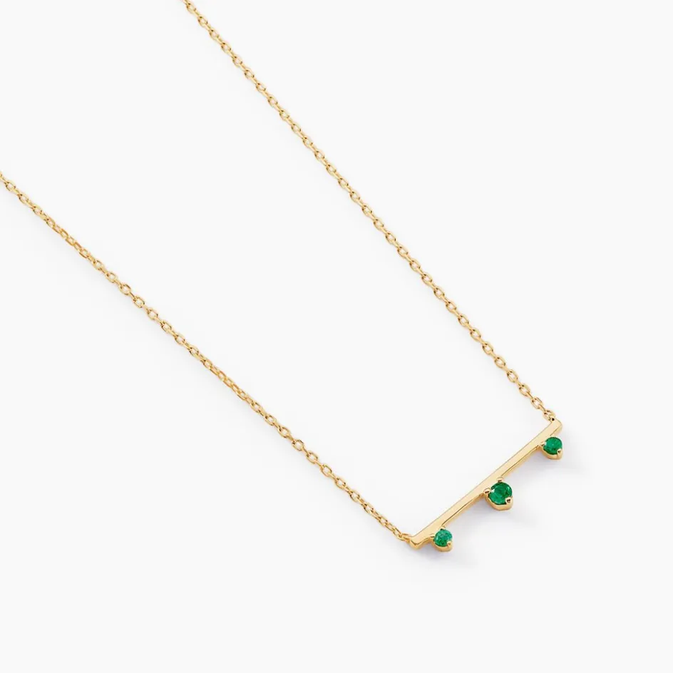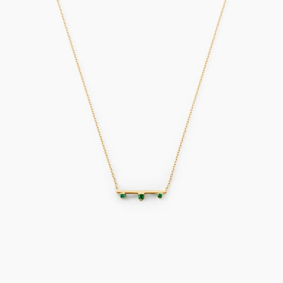 Collier Or Jaune 375/1000 Trilogie Emeraude 0.04cts Serti Griffes Sur Barre Maille Forcat 40+2cm
