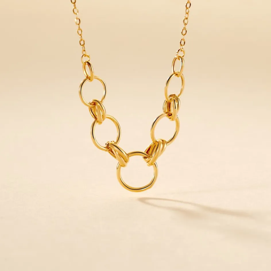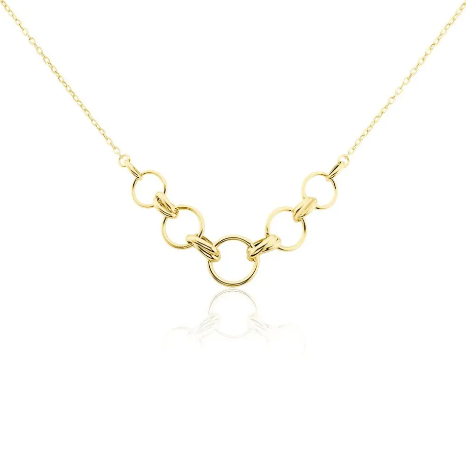 Collier Or Jaune 375/1000 Cercle Ajouré Alterné Avec Double Anneaux Oval Entrelacé Maille Forçat 42+3cm