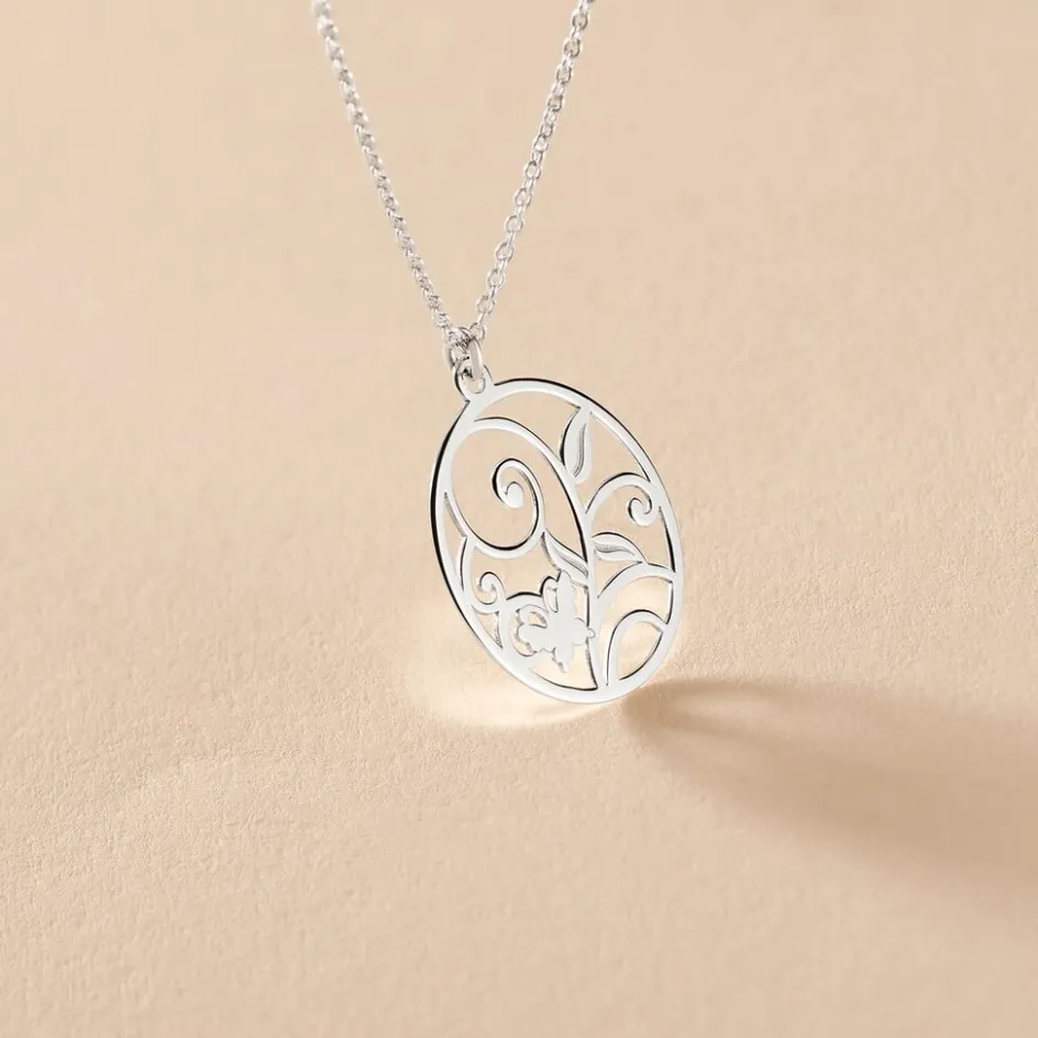 Collier Argent Blanc 925/1000 Cercle Arabesques Ajourees Maille Forcat 45cm
