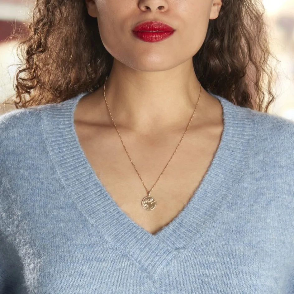 Collier Plaqué Or Jaune Pastille Mate Signe Astrologique Sagittaire Oxydes De Zirconium Chaine Forcat 50cm