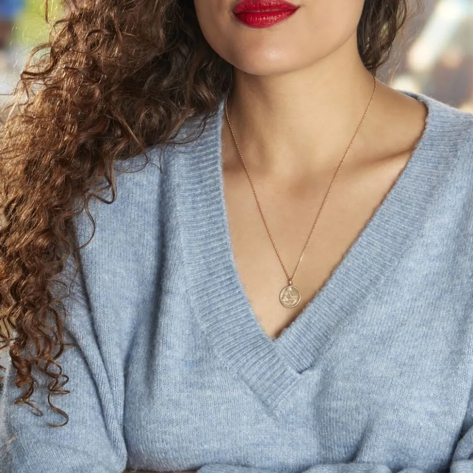Collier Plaqué Or Jaune Pastille Mate Signe Astrologique Poisson Oxydes De Zirconium Chaine Forcat 50cm
