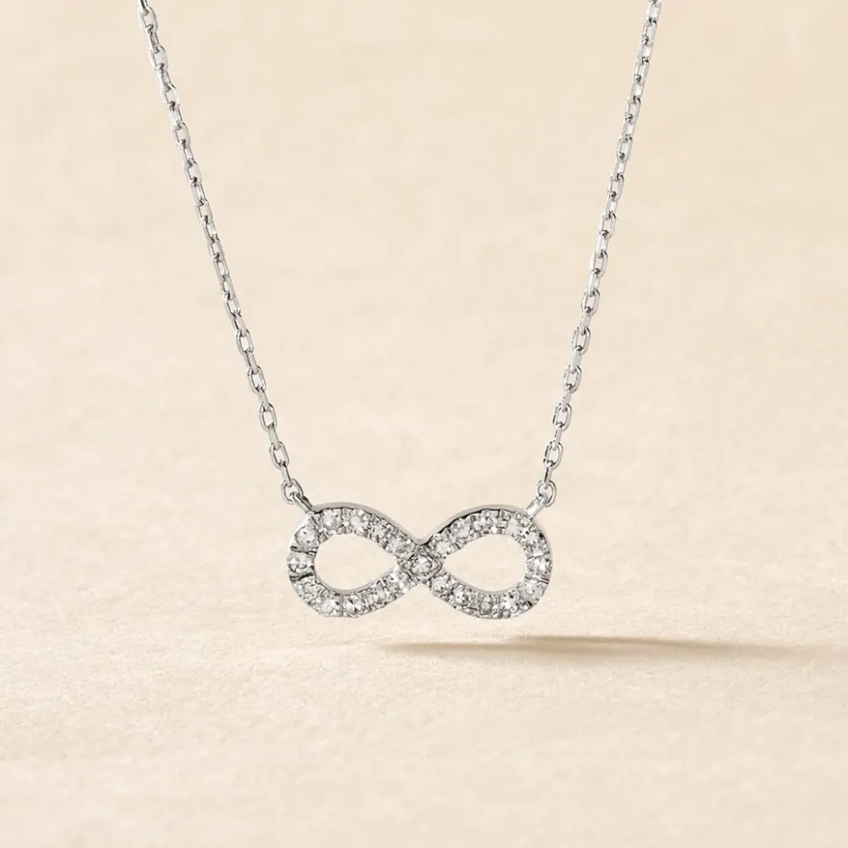 Collier Or Blanc 375/1000 Forme Infini Diamants 42cm