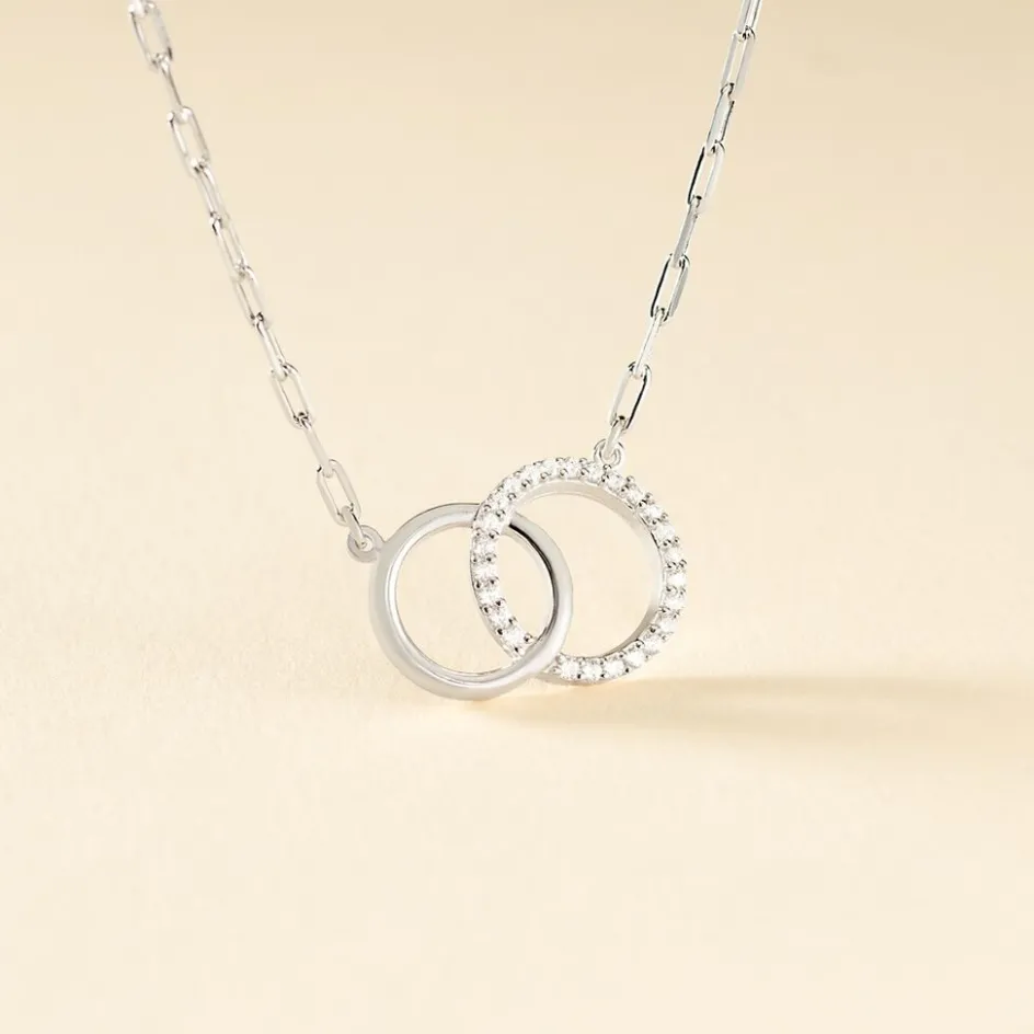 Collier Argent 925/1000 isabel Double Cercles Ajoures Entrelaces Sertis Griffes Oxydes De Zirconium Maille Cheval 45cm
