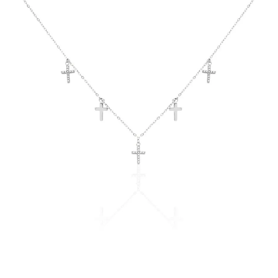 Collier Argent 925/1000 ivah Pampilles Croix Oxydes De Zirconium Maille Forcat 45cm