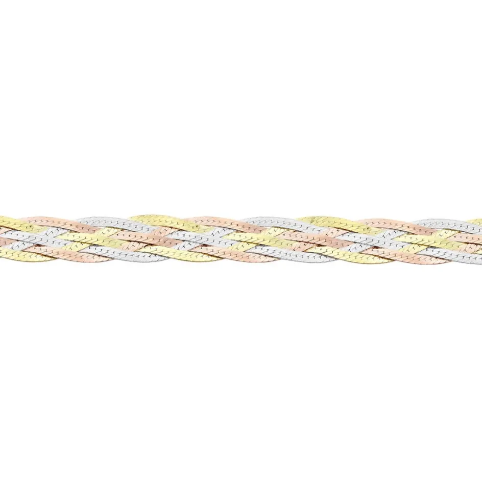 Collier Or Tricolore 375/1000 Tresse 6 Fils 5mm 42cm