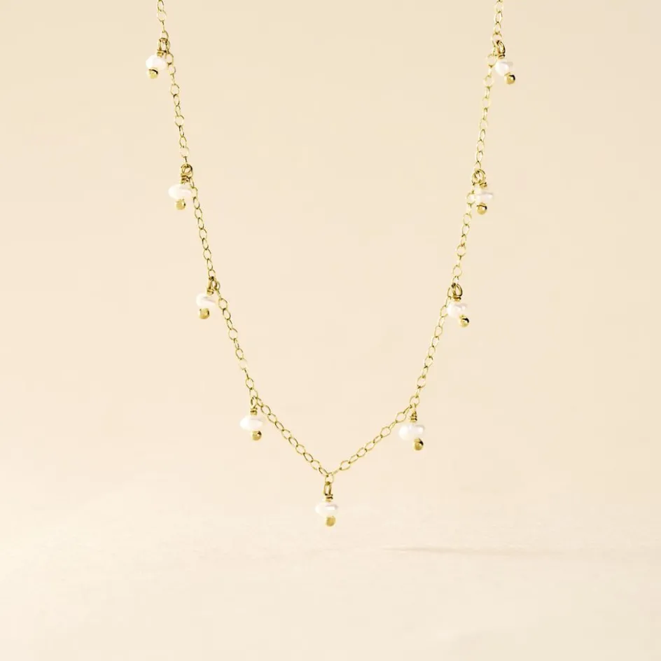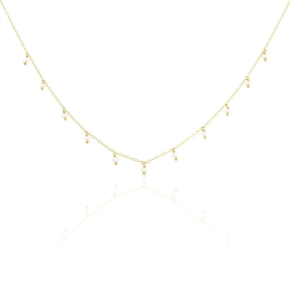 Collier Or Jaune 375/1000 Pampille 11 Perles De Culture Blanches Maille Forcat 40+2cm
