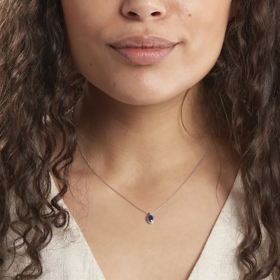 Collier Or Blanc 375/1000 Saphir Et Entourage Diamant Blanc Kriska 42cm