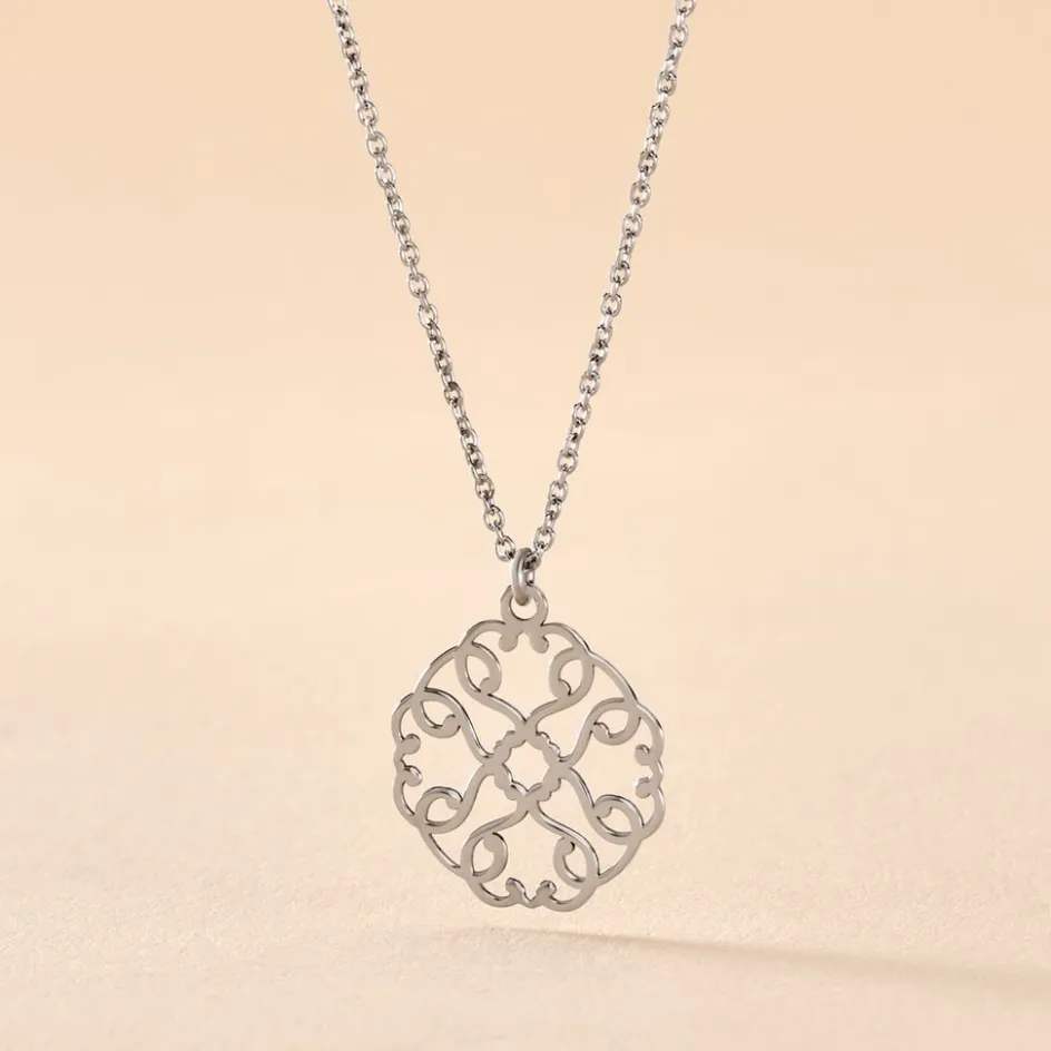 Collier Argent Blanc 925/1000 Rosace Maille Forcat 45cm