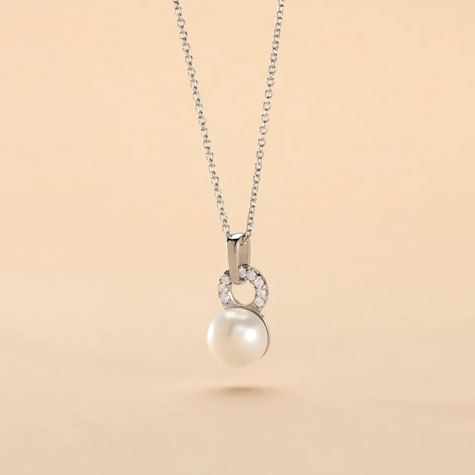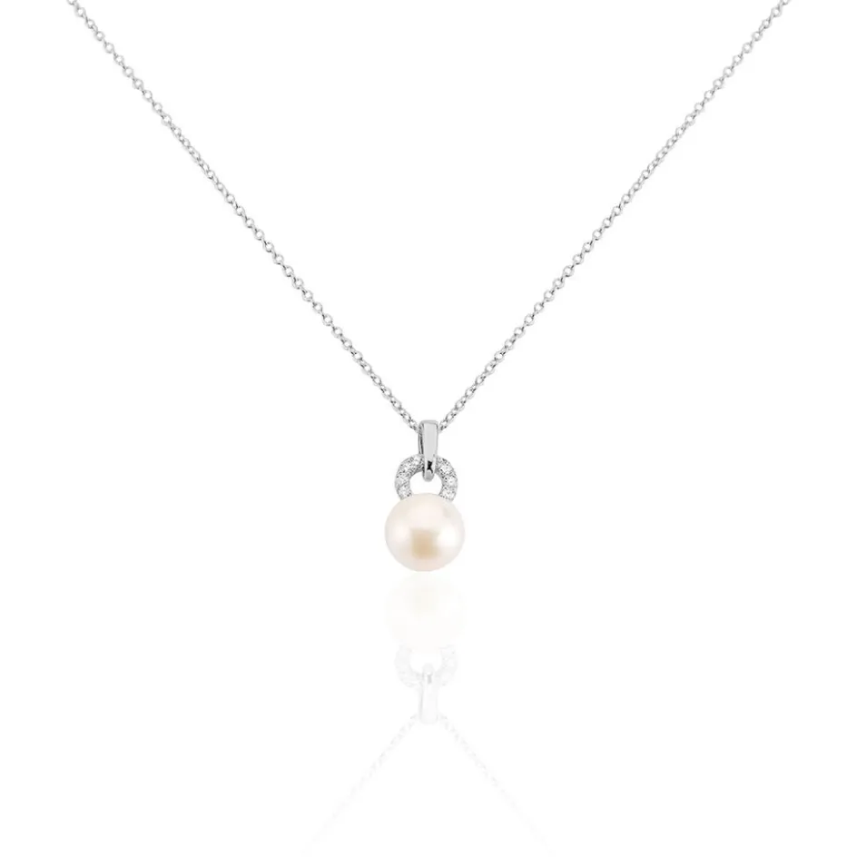 Collier Argent Blanc 925/1000 Perle De Culture 8-8.5mm Oxyde 45cm