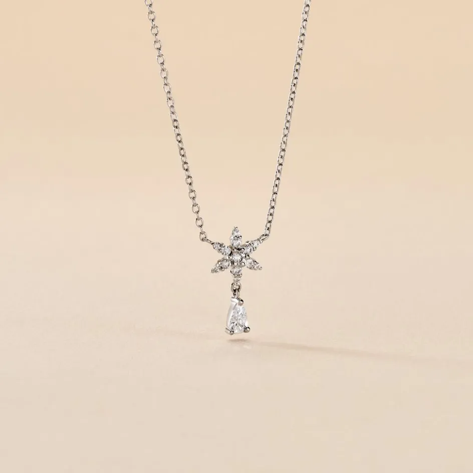 Collier Argent 925/1000 Etoile Oxyde De Zirconium Serti Griffes Maille Forçat 45cm