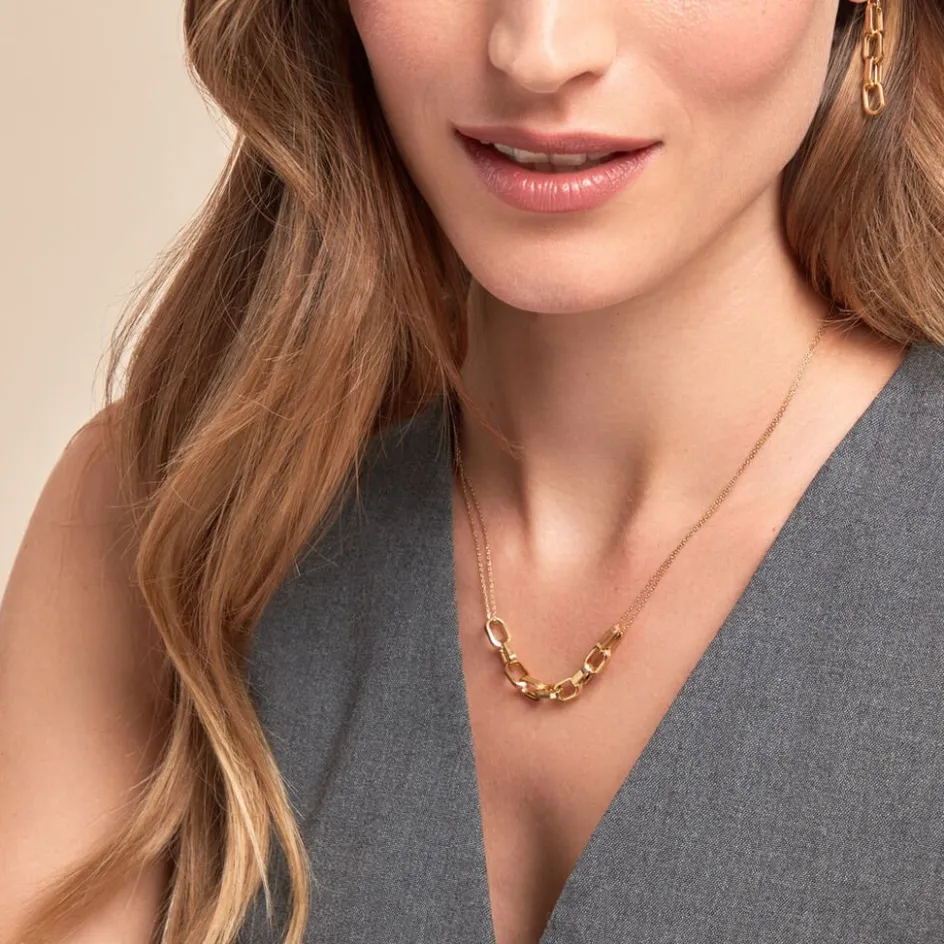 Collier Or Jaune 375/1000 Maillons Rectangulaires Maille Forcat 45cm