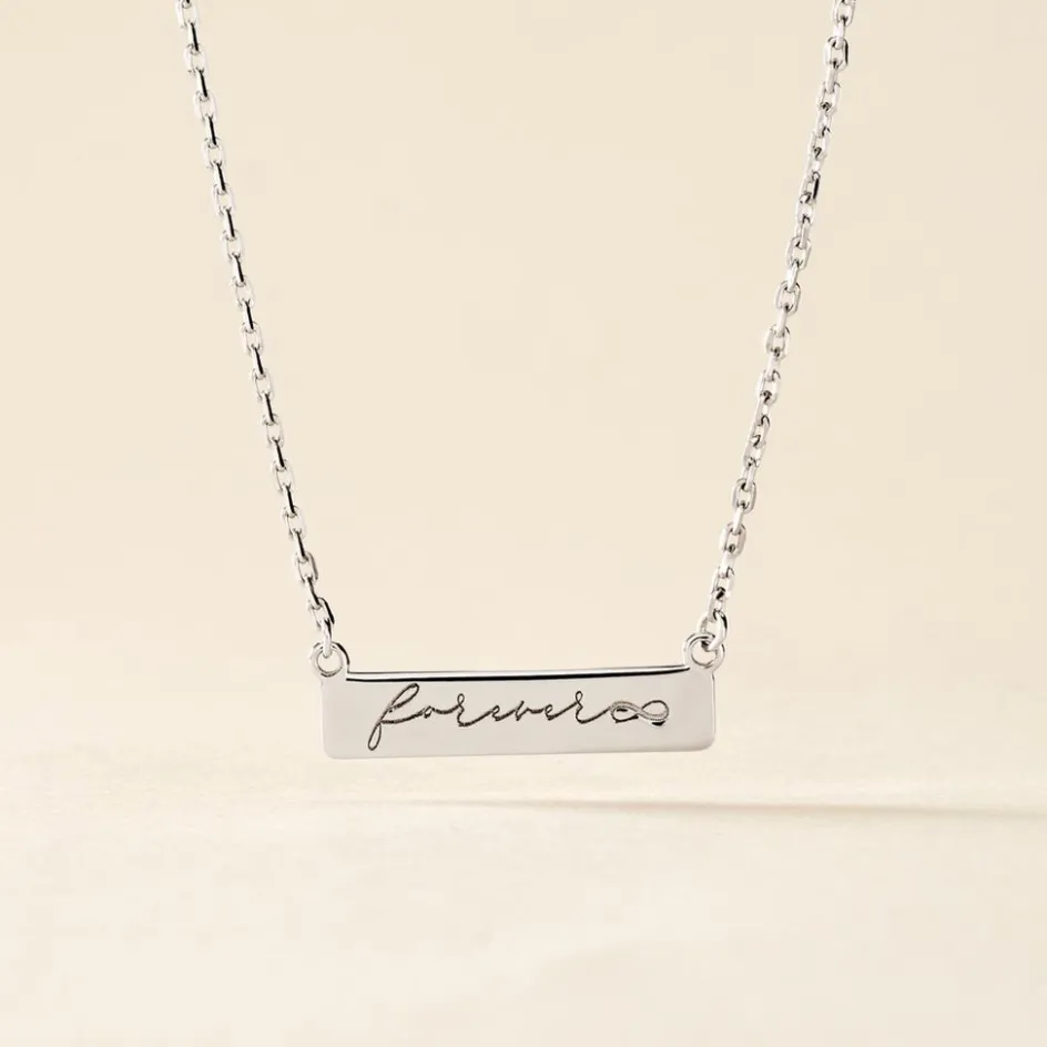 Collier Argent Blanc 925/1000 Plaque Rectangulaire Message Forever Maille Forçat 42+3cm