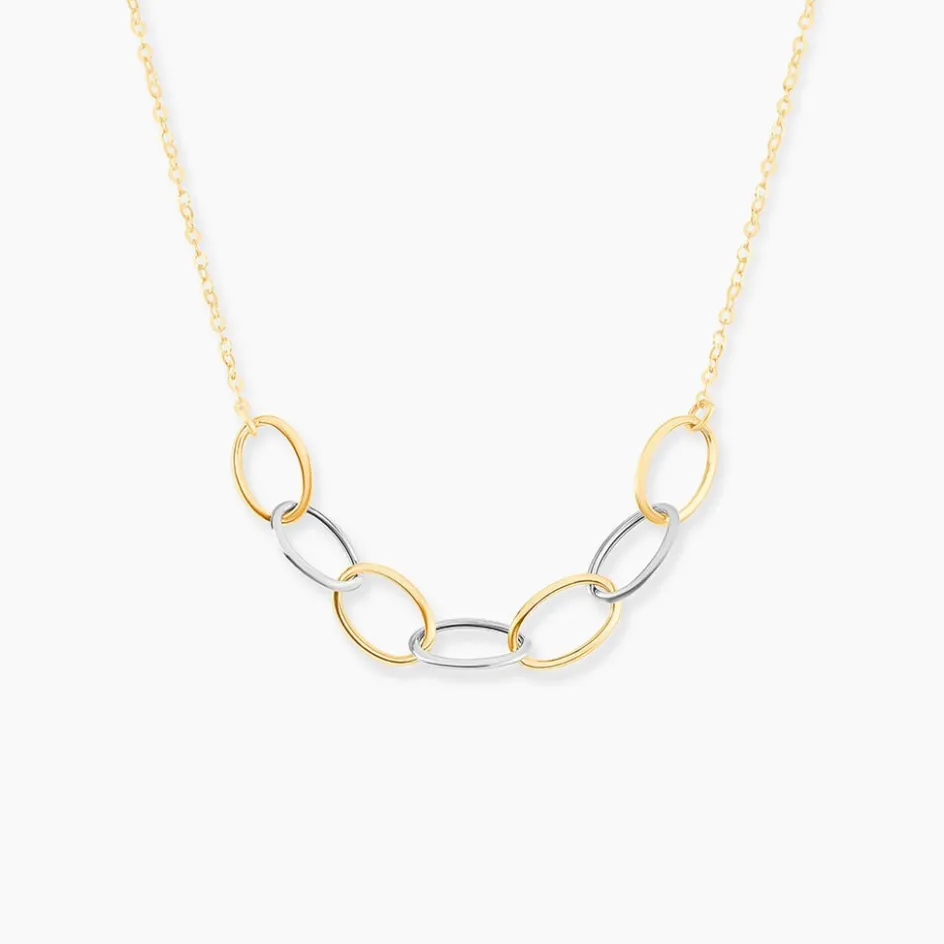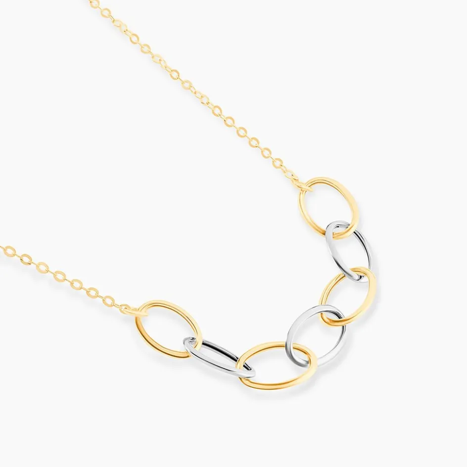 Collier Or Bicolore 375/1000 Chaine Forçat Or Jaune Et 7 Eléments Ovales Or Blancs Et Or Jaune Alternes 45cm