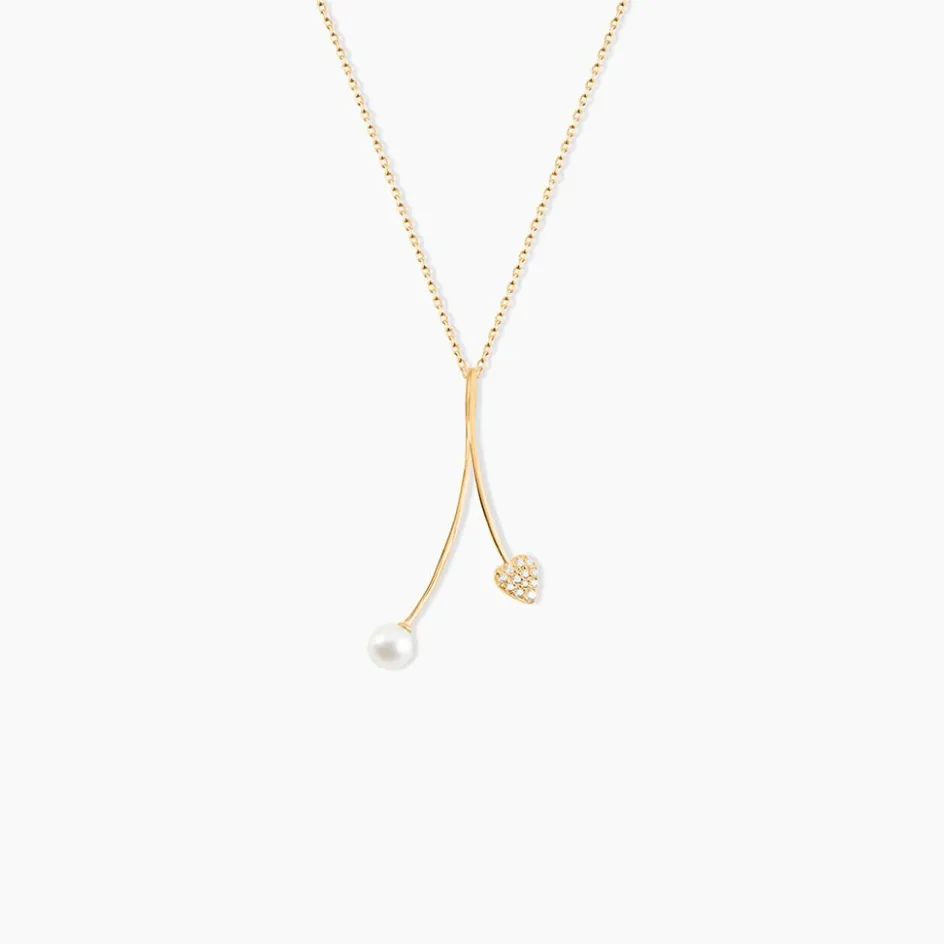 Collier Or Jaune 375/1000 C艙ur Entrelace Pavage Oxydes De Zirconium Et Perle De Culture 4/4.5mm 43cm