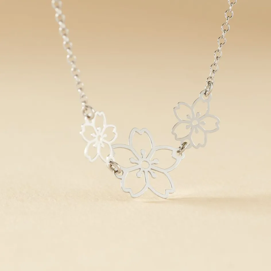 Collier Argent Blanc 925/1000 Triple Fleurs Maille Forcat 45cm