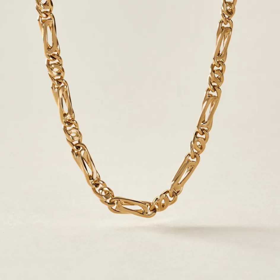 Collier Maille Or Jaune 750/1000 Maille Alternee 1/3 Fantaisie Largeur 4.5mm 60cm