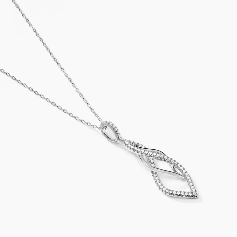 Collier Argent 925/1000 malika Formes Gouttes Torsadees Entrelacees Pavage Oxydes De Zirconium 45cm