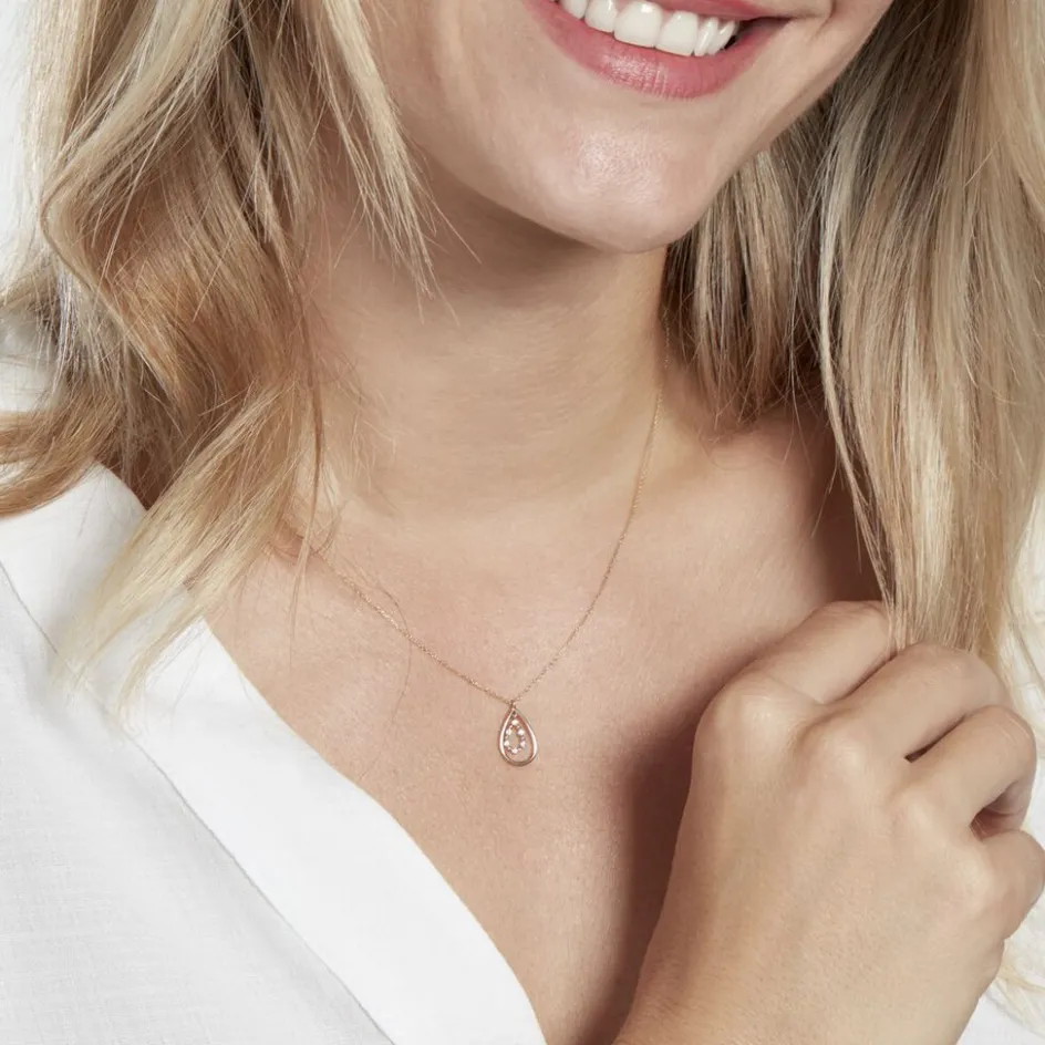 Collier Or Jaune 375/1000 Forme Double Goutte Pavage Diamants Maille Forçat 42cm