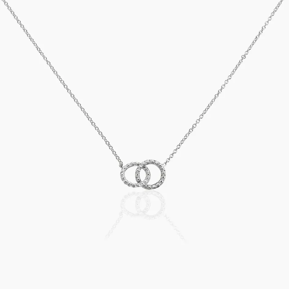 Collier Argent Blanc 925/1000 Cercles Entrelacés Effet Perlé Maille Forçat 42+3cm
