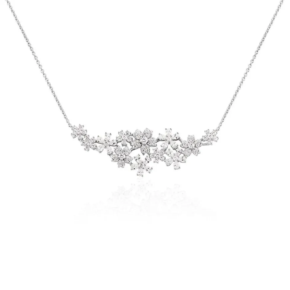 Collier Argent 925/100 Floral Oxydes De Zirconium Maille Forcat 42+3cm