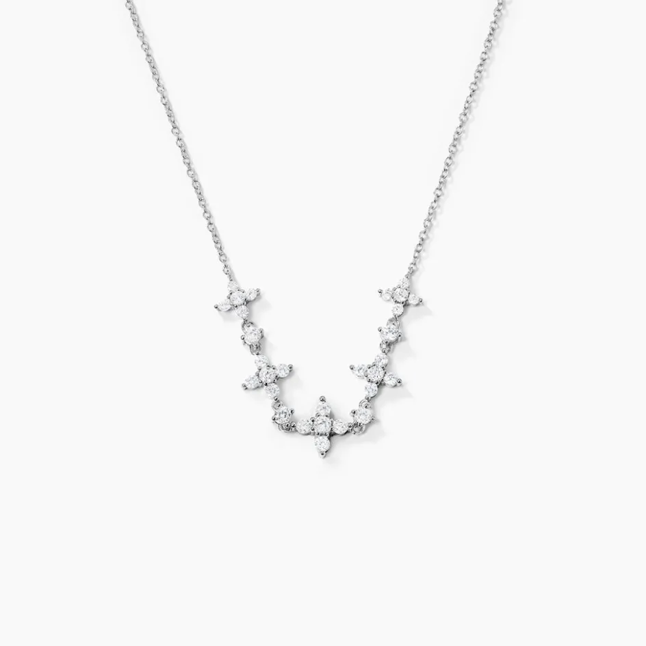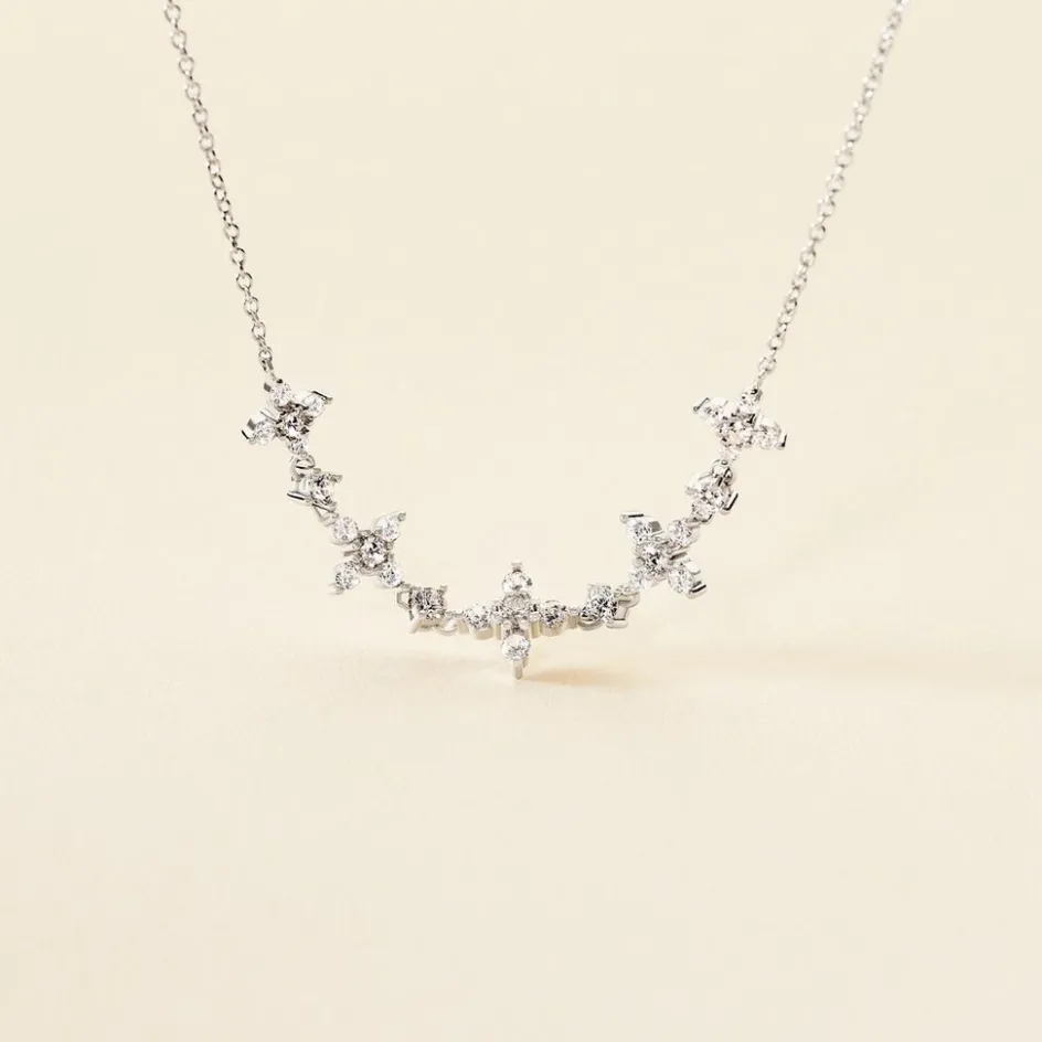 Collier Argent 925/1000 Floral Oxydes De Zirconium Maille Forcat 45cm