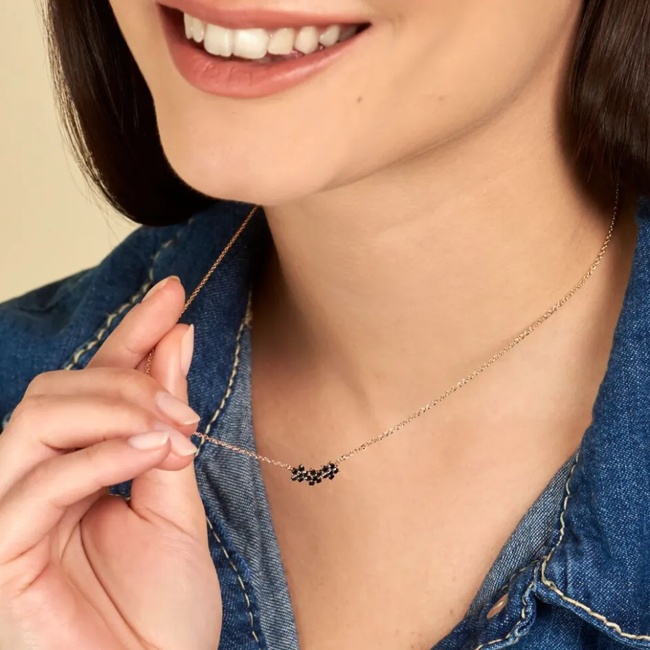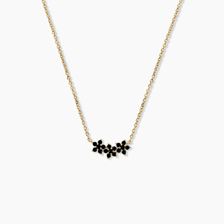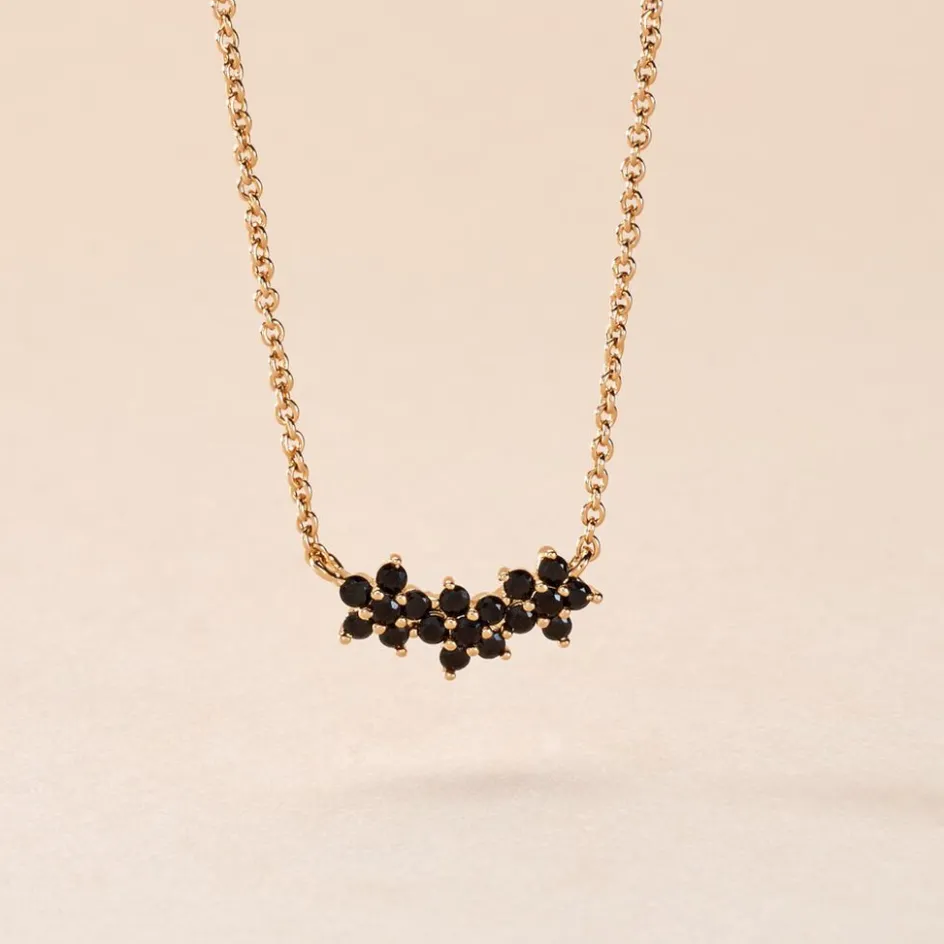 Collier Plaqué Or Jaune Triple Fleurs Oxydes De Zirconium Noirs Maille Forçat 42+3cm