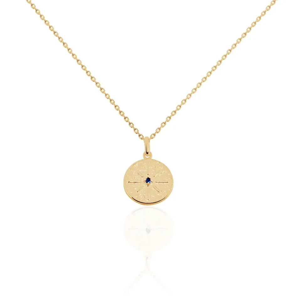 Collier Plaqué Or Jaune Forme Ronde Motif Astral Pierre Bleue 44cm