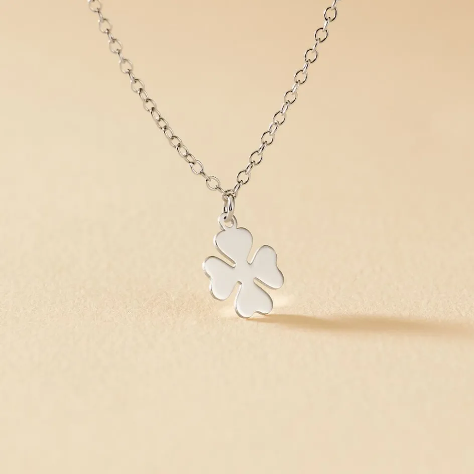 Collier Argent Blanc 925/1000 Trefle Maille Forcat 45cm