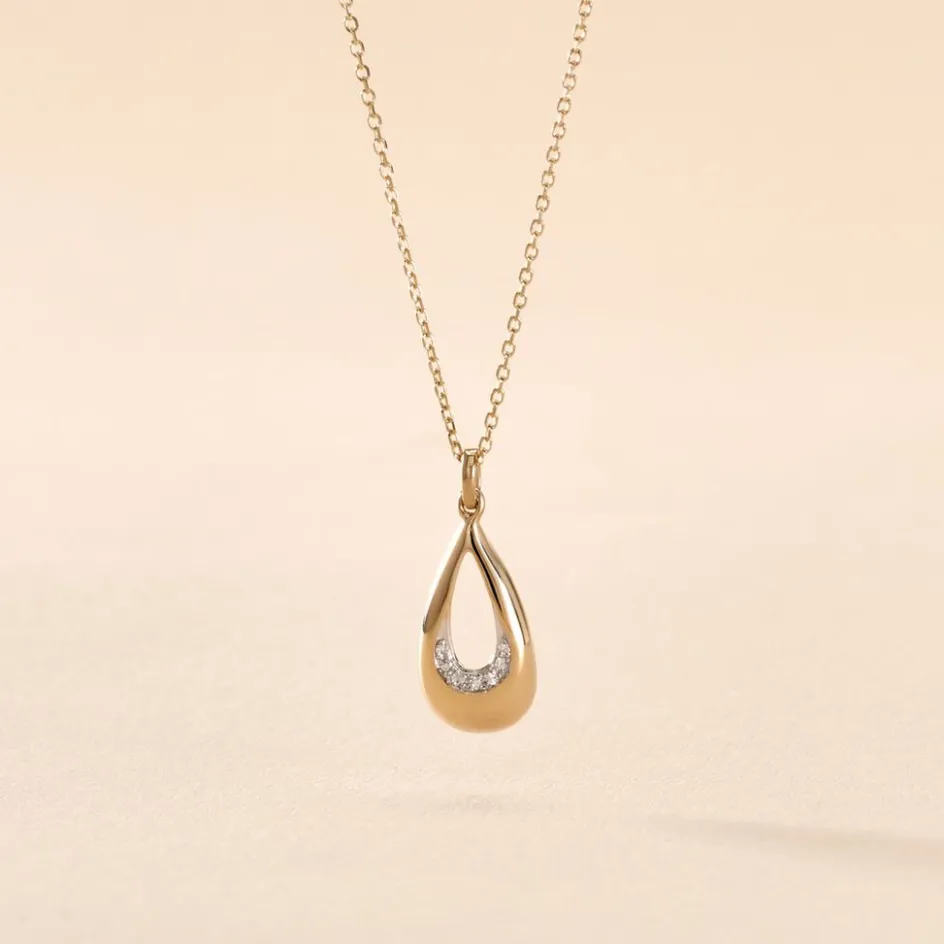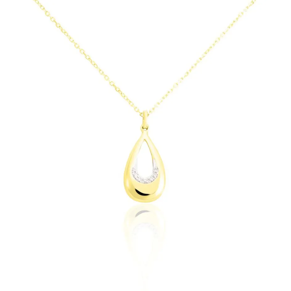 Collier Or Jaune 375/1000 Forme Goutte Pavage Diamants 42cm