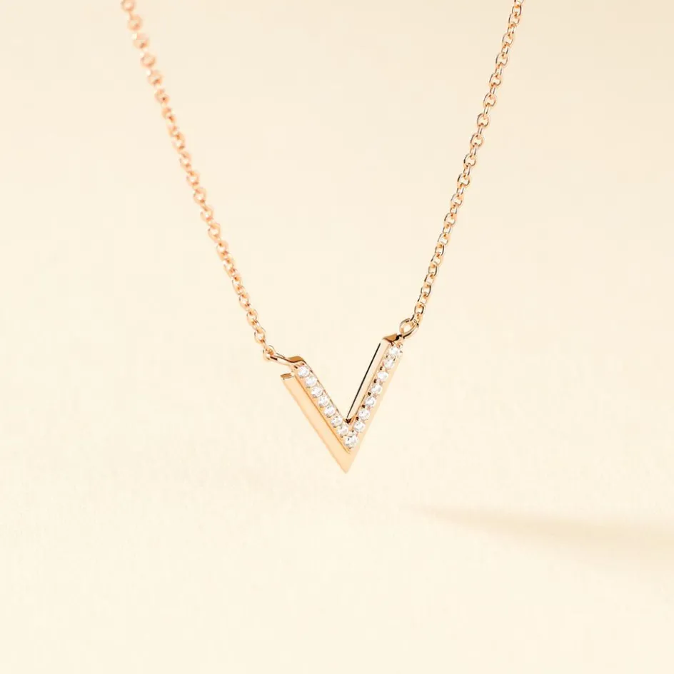 Collier Argent Rose 925/1000 Forme Double Ailes De Mouettes Semi Pavage Oxydes De Zirconium 45cm