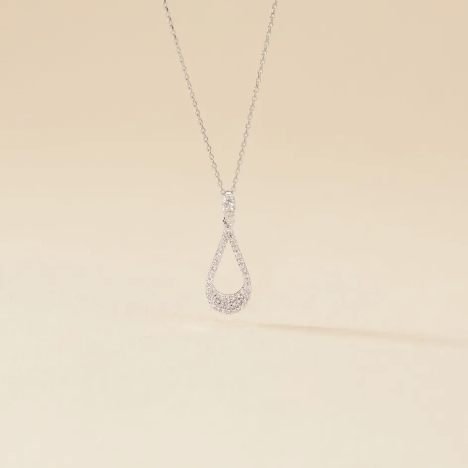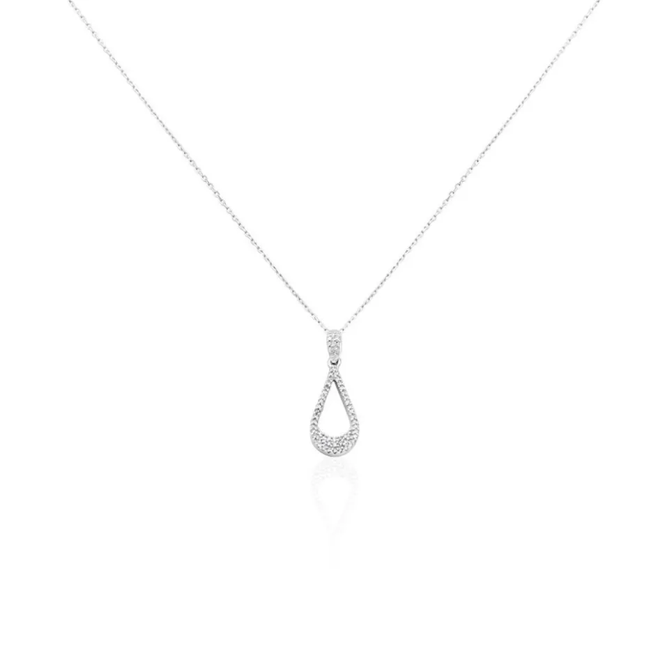 Collier Or Blanc 375/1000 Forme Goutte Diamants Maille Forçat 40+2cm