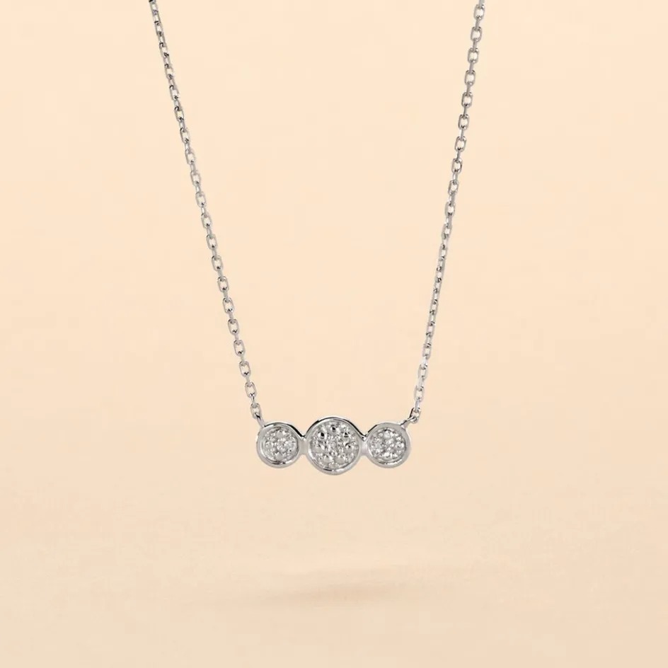 Collier Or Blanc 375/1000 3 Ronds Pavage Diamants Maille Forçat 40+2cm