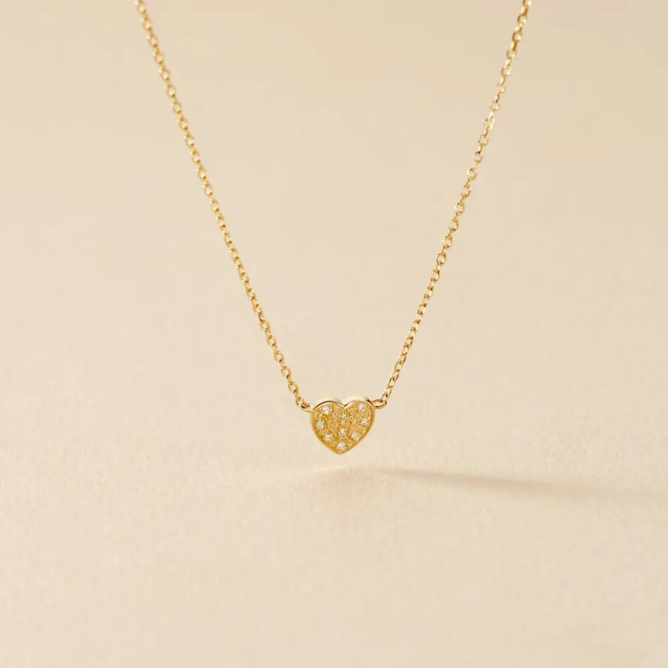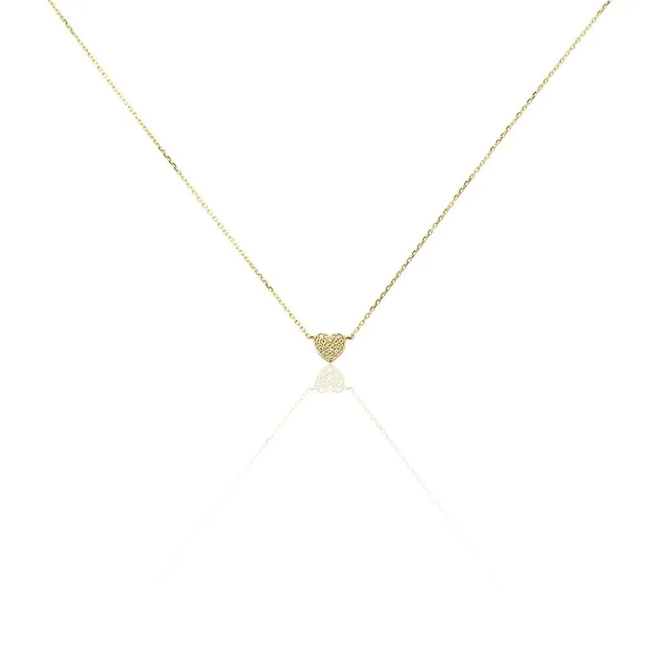 Collier Or Jaune 375/1000 Coeur Pavage Diamants Maille Forcat 40+2cm