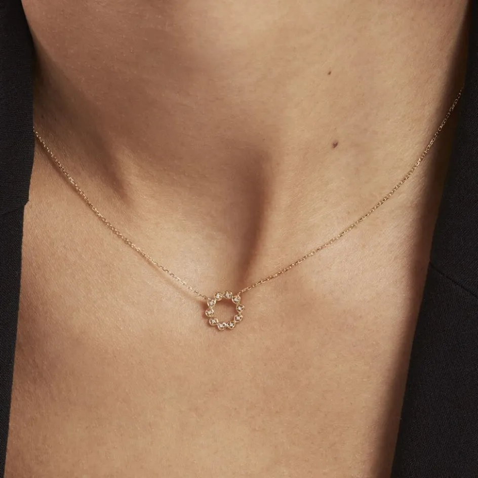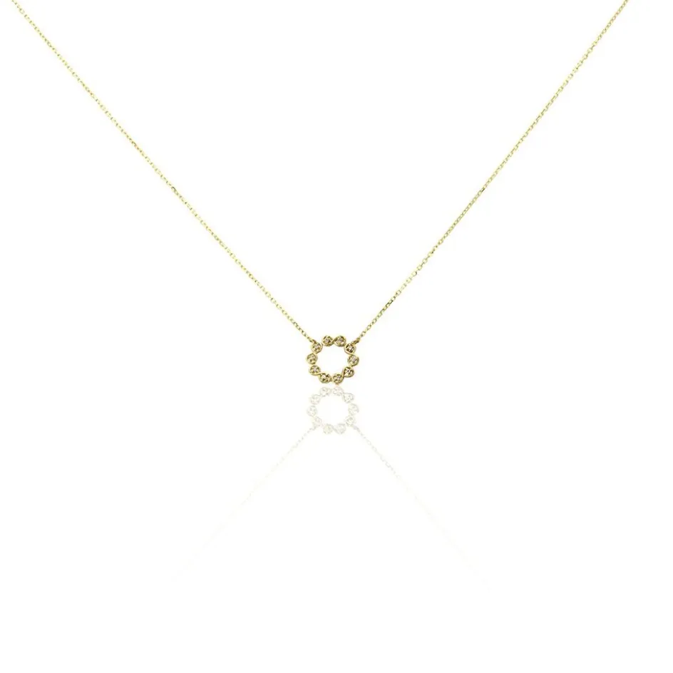Collier Or Jaune 375/1000 Motif Cercle Rond Diamants Maille Forcat 40+2cm