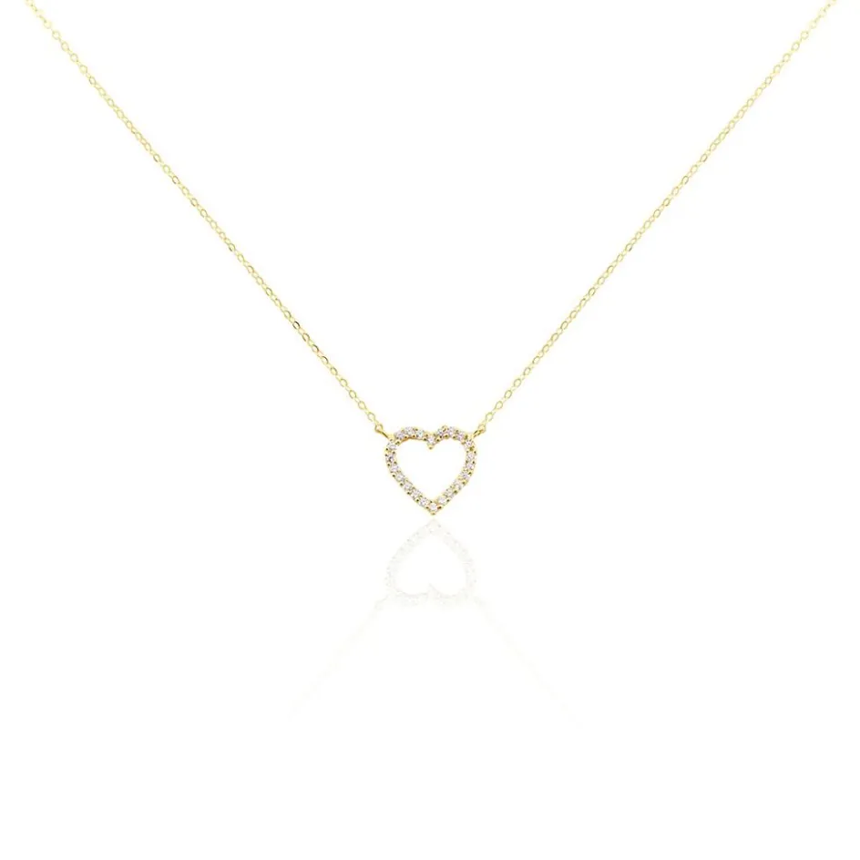 Collier Or Jaune 375/1000 C艙ur Ajouré Oxyde De Zirconium Blanc Serti Griffes Maille Forçat 45cm