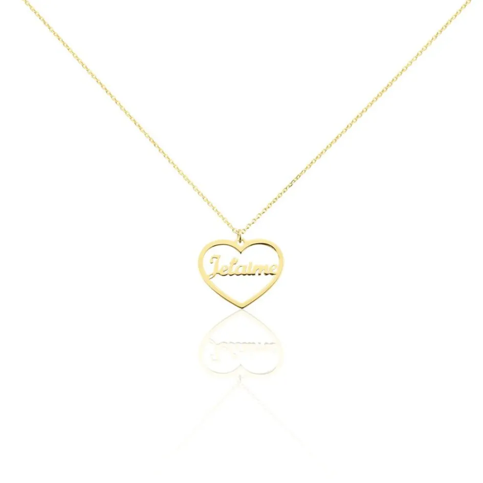 Collier Or Jaune 375/1000 C艙ur Ajoure Avec Message Je T’aime Maille Jaseron 42cm