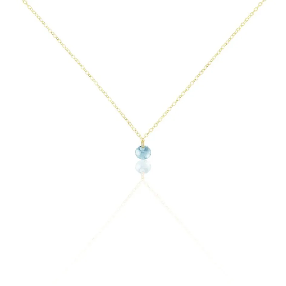 Collier Or Jaune 375/1000 Pampille Oxyde De Zirconium Bleu Maille Forcat 38/40cm