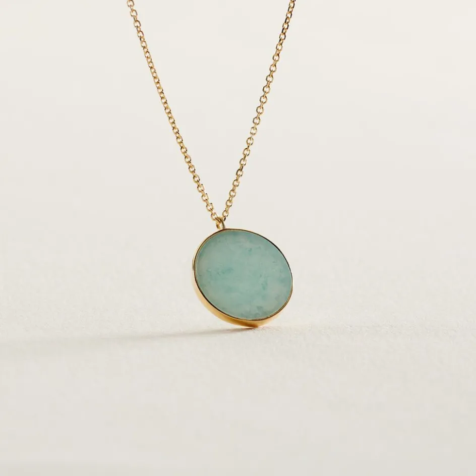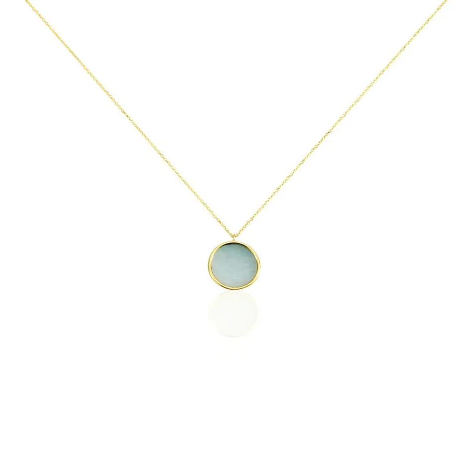 Collier Or Jaune 375/1000 Cercle Amazonite Maille Jaseron 40+2cm