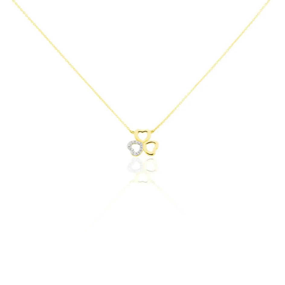 Collier Or Jaune 375/1000 Forme Triple C艙urs Maille Forçat Pavage Diamants 42cm