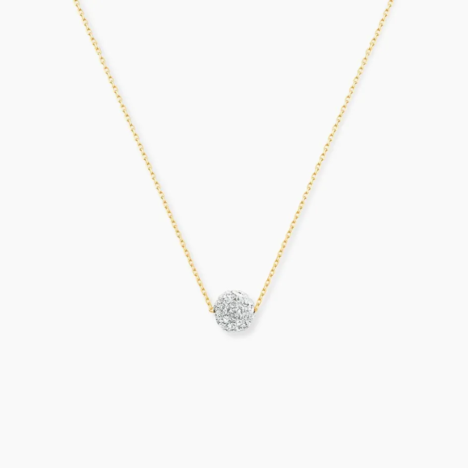 Collier Or Jaune 375/1000 Boule Cristal 7mm Maille Forcat 42+3cm