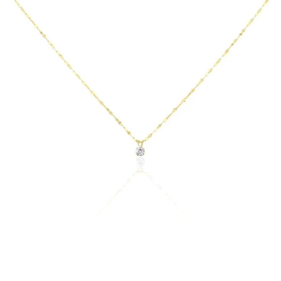 Collier Or Jaune 375/1000 Oxyde De Zirconium Serti Griffes Maille Lumina 42cm