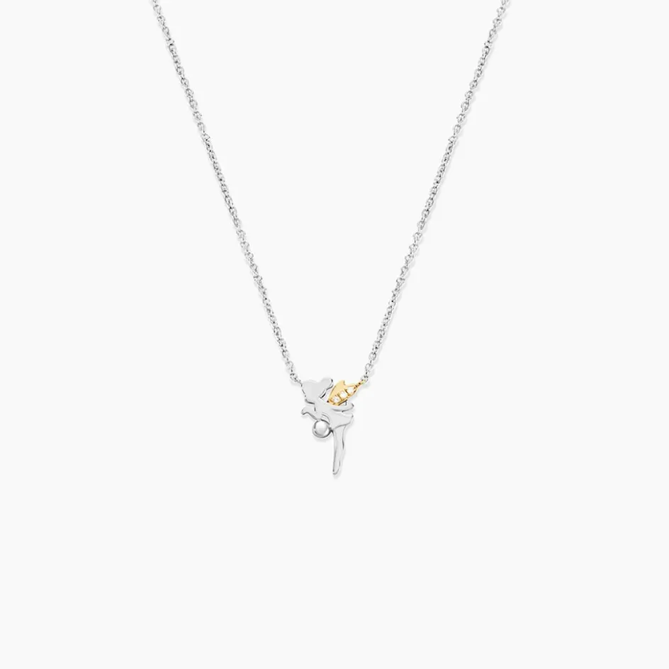 Collier Or Jaune 375/1000 Et Argent Blanc 925/1000 Fée Oxydes De Zirconium Blancs Maille Jaseron 42+3Cm