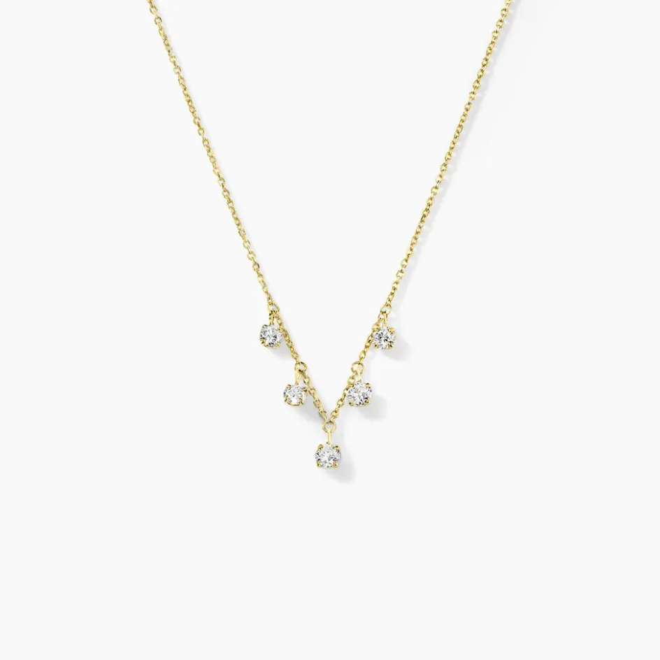 Collier Or Jaune 375/1000 Pampille 5 Diamants Synthetiques 0.50cts Sertis Griffes Maille Forcat 40+2cm